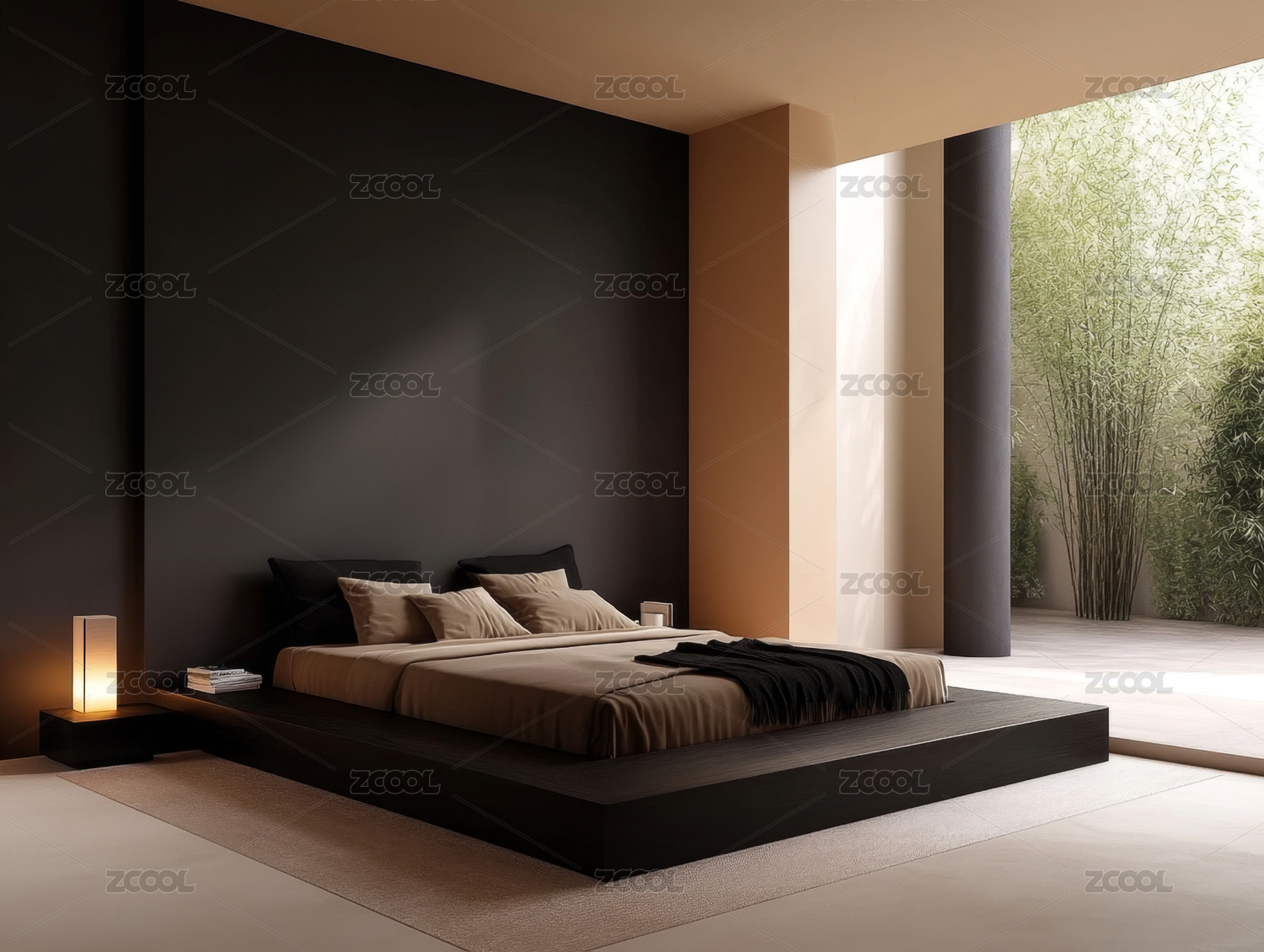 卧室,现代,简约,室内,设计,床,窗帘,自然,景观,植物
