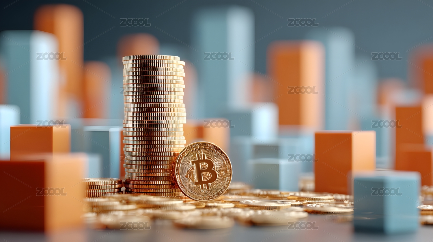 硬币与图表上的比特币标志