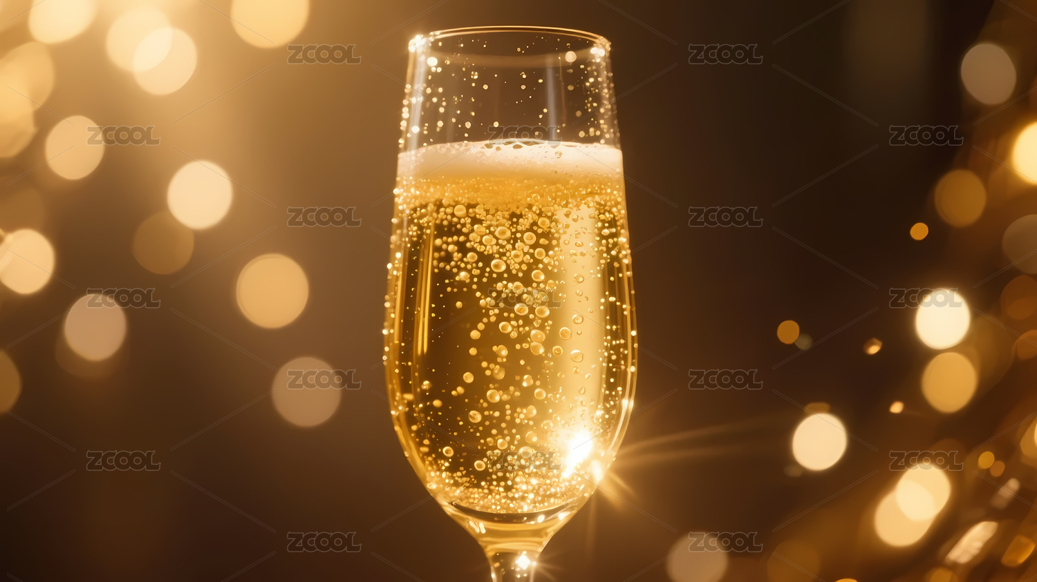 绿色液体香槟杯与黑色背景的庆祝氛围