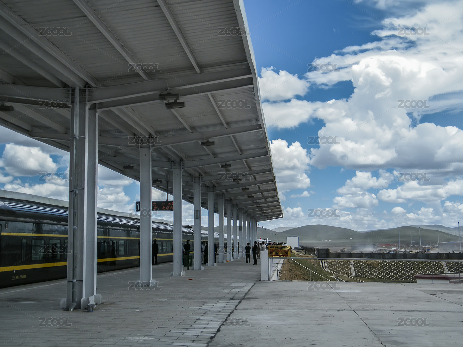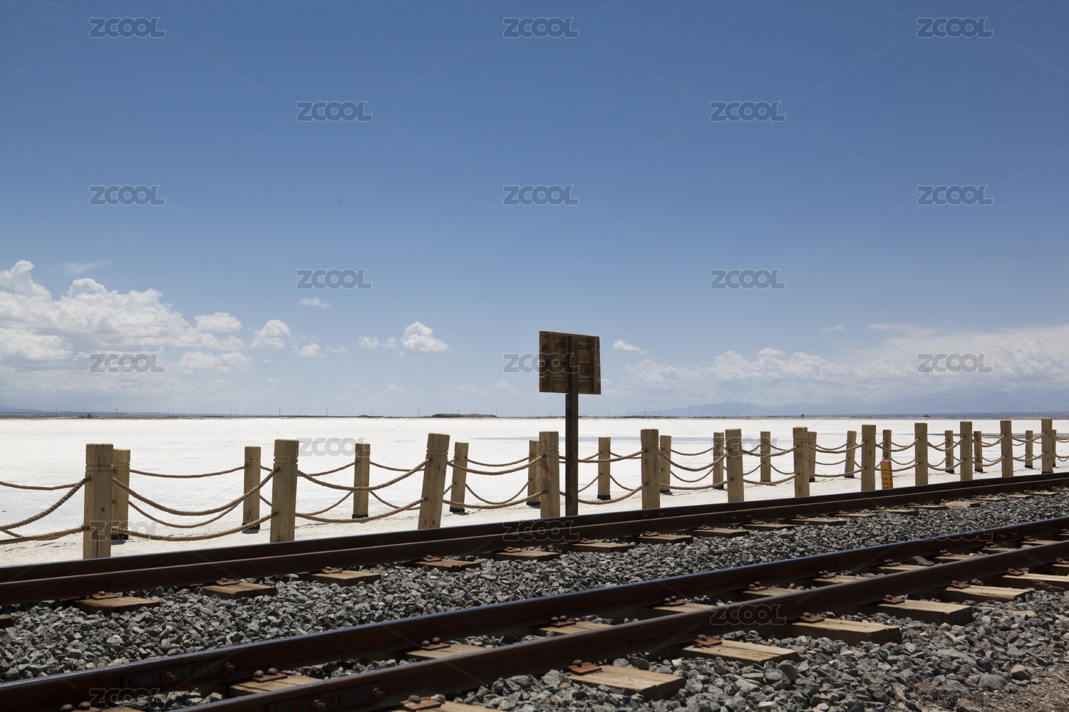 中国青海茶卡盐湖,蓝色的天空之镜铁道上