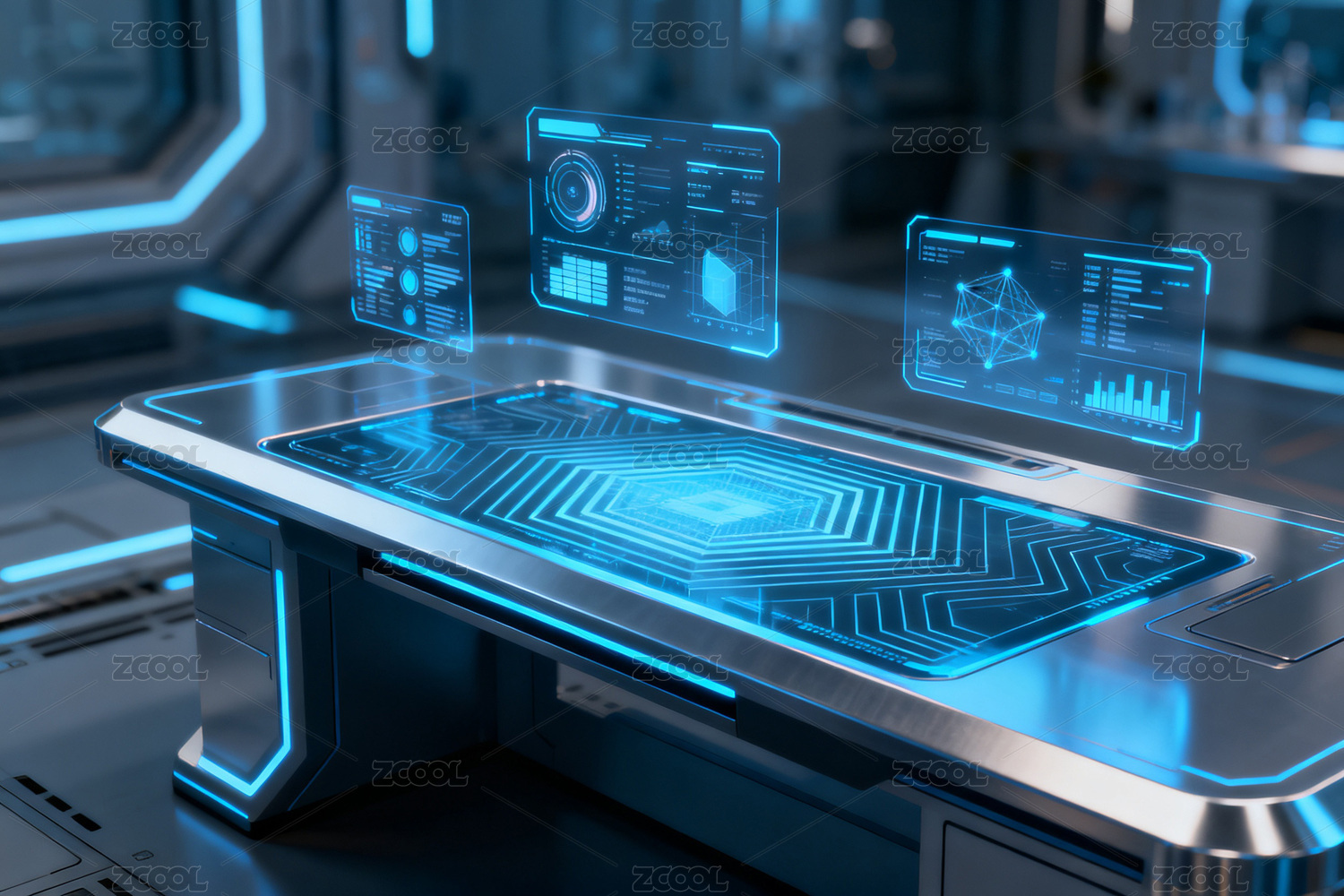 未来科技感控制台与全息界面