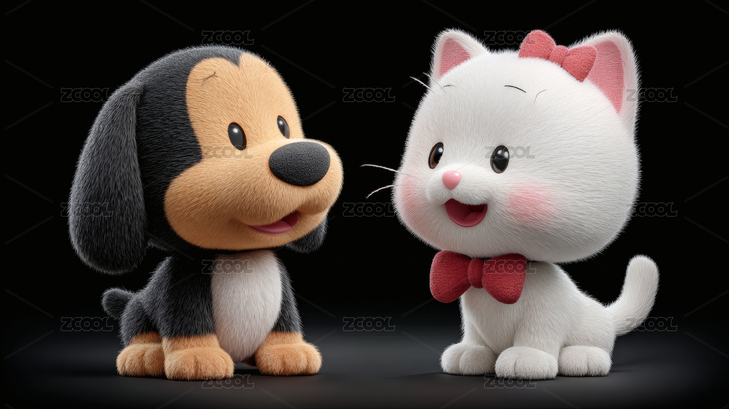 卡通,动漫,小猫,小狗,插画,宠物,爱心,友爱,可爱,动物