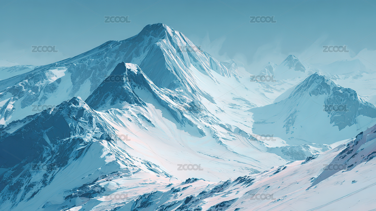 雪山巍峨壮丽雾气缭绕的冰雪世界