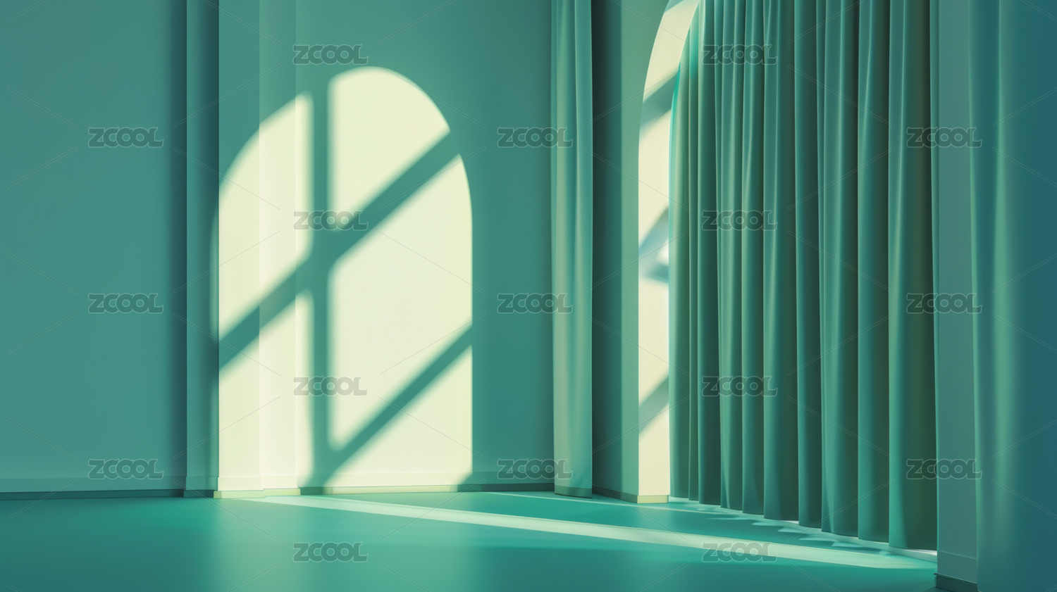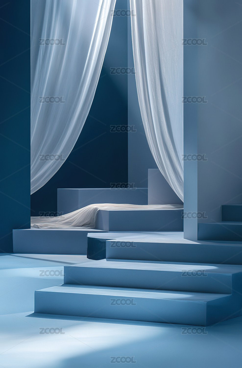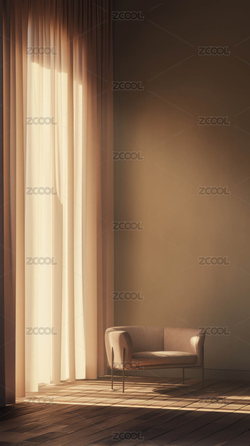 窗帘,光影,室内,椅子,楼梯,地板,墙壁,画框,橙色,蓝色
