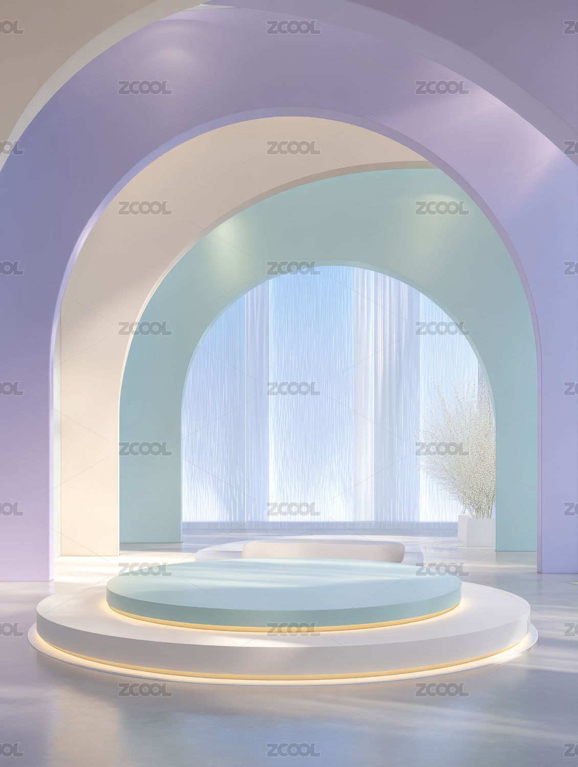 现代,室内,装饰,展示,平台,金色,植物,灯光,紫色,设计