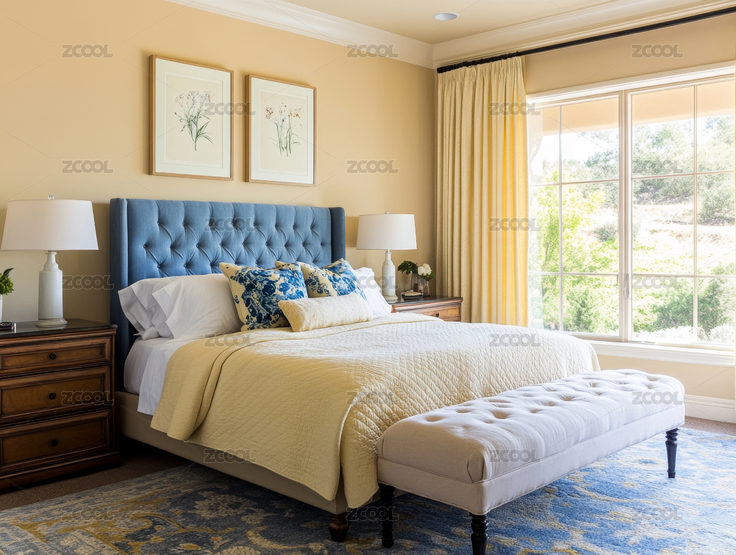卧室,豪华,现代,床,头板,灯具,地毯,窗帘,阳台