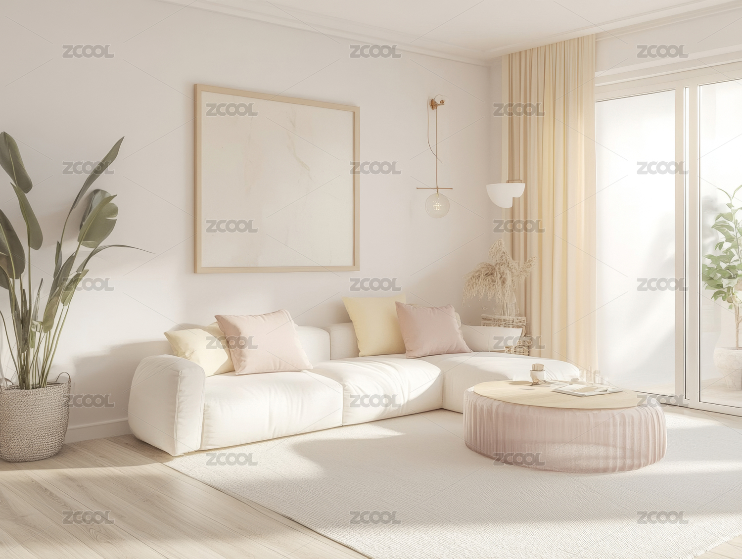粉色,客厅,沙发,植物,装饰画,落地灯,茶几,地毯,书架,窗户