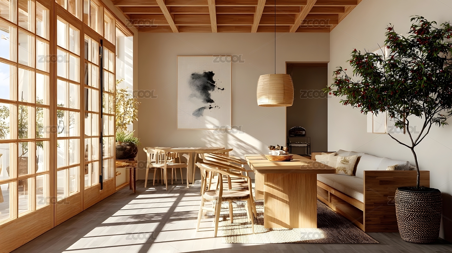 日式原木风餐厅室内设计