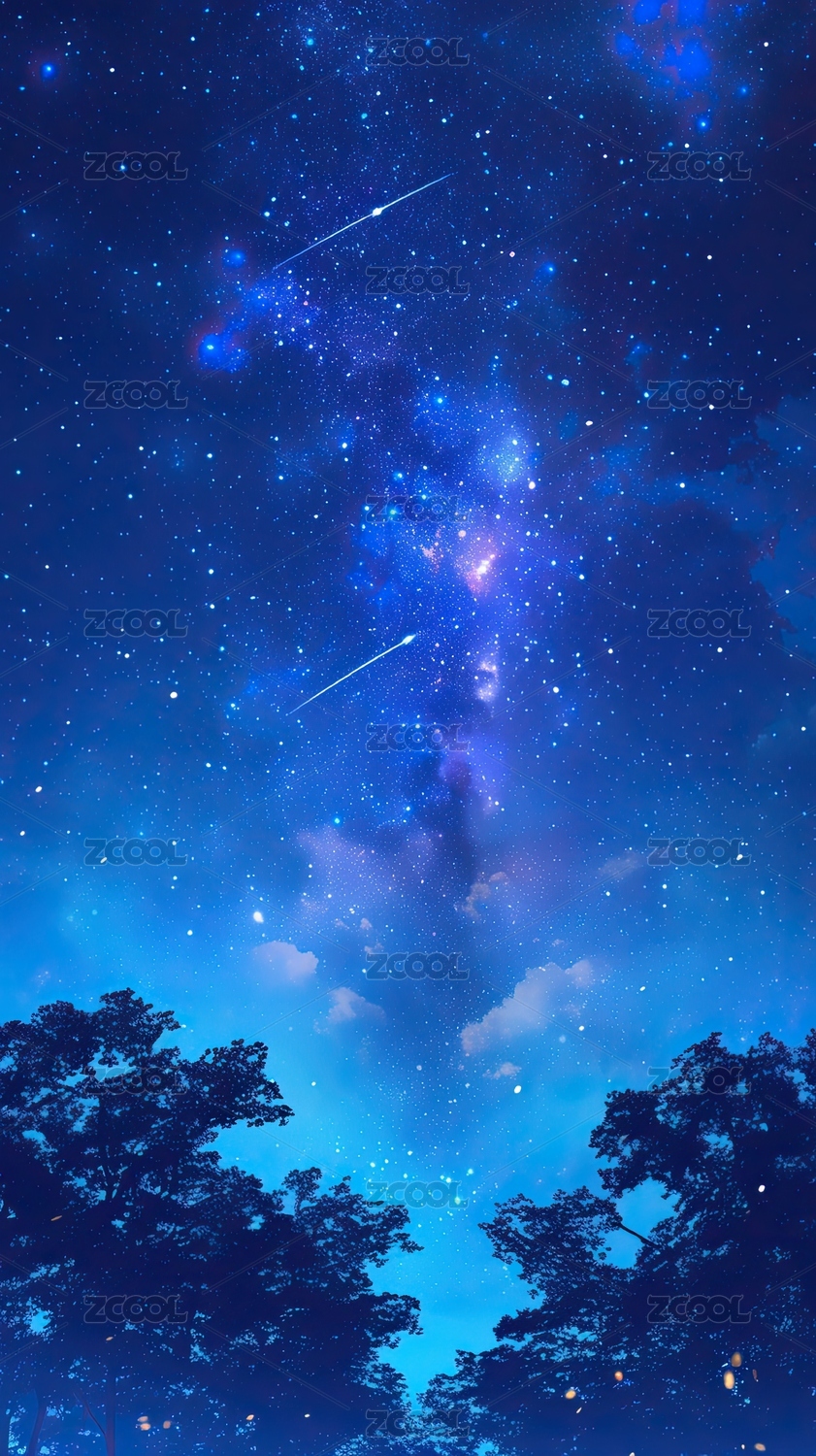 手绘唯美的抽象艺术感夜晚天空风景插画