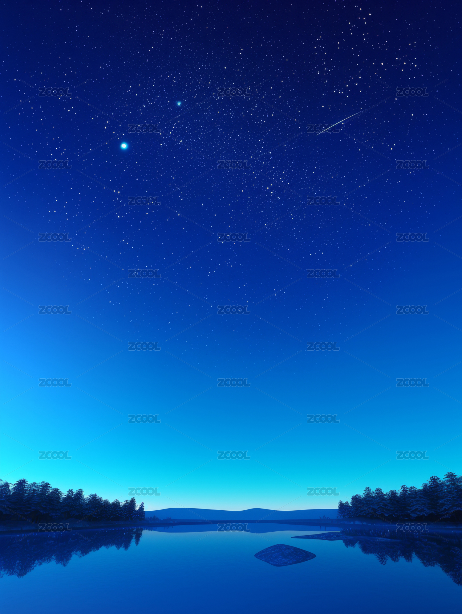 星空,湖泊,夜晚,山脉,树木,反射,流星,自然,宁静