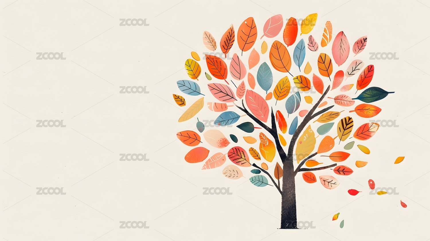 彩色树叶秋季树木插画