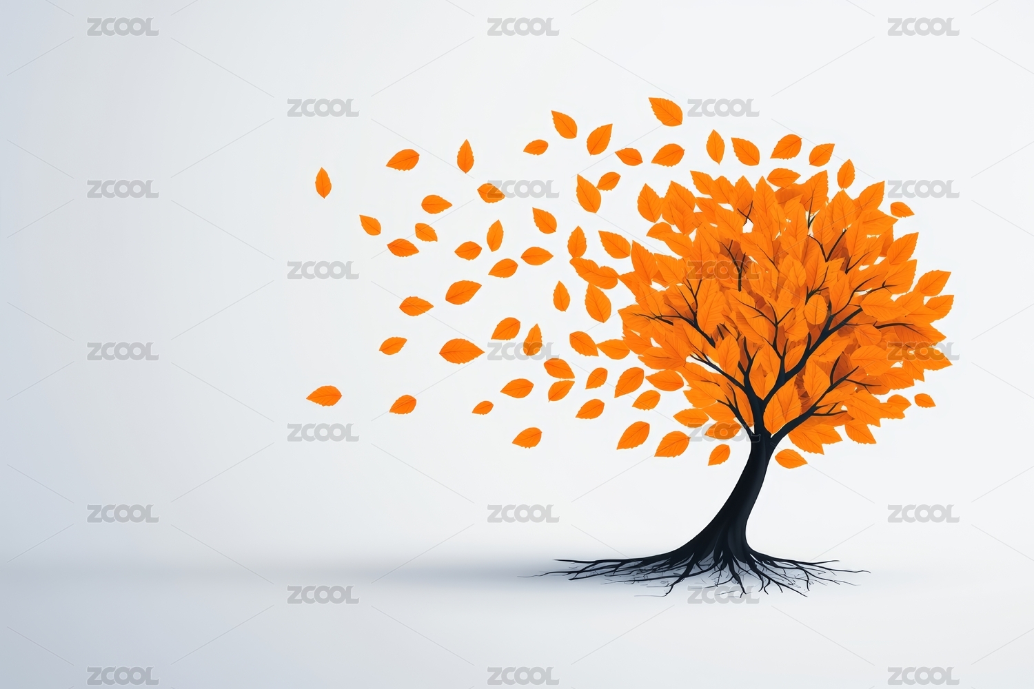 秋叶飘零树木图