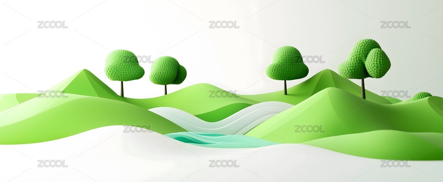 森林瀑布夏天旅行户外环境夏季旅游场景插画