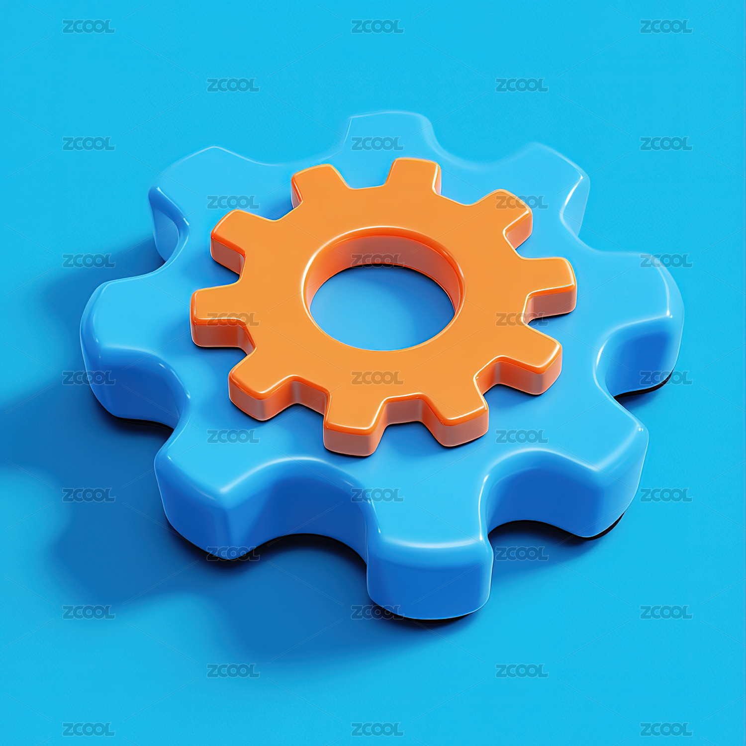蓝色齿轮3D模型元素图标