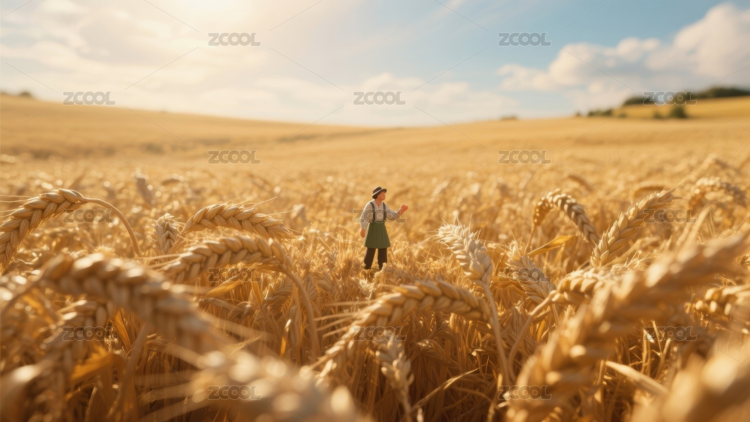 玩偶,麦田,秋天,田野,金黄,可爱,毛绒,童趣,温暖,布娃娃