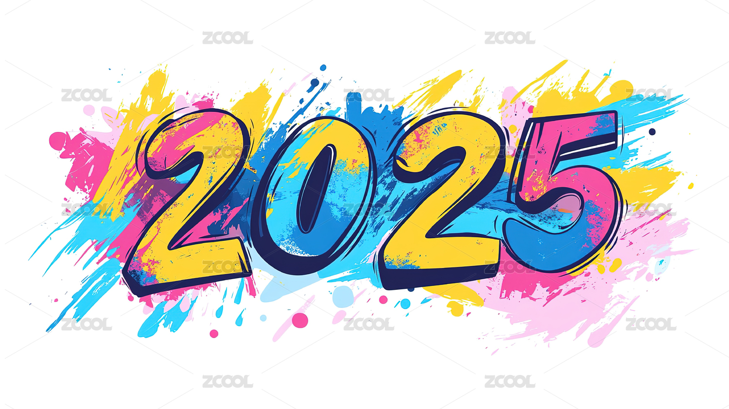 2025,彩色,喷溅,数字,艺术,创意,设计,图案,年份,背景