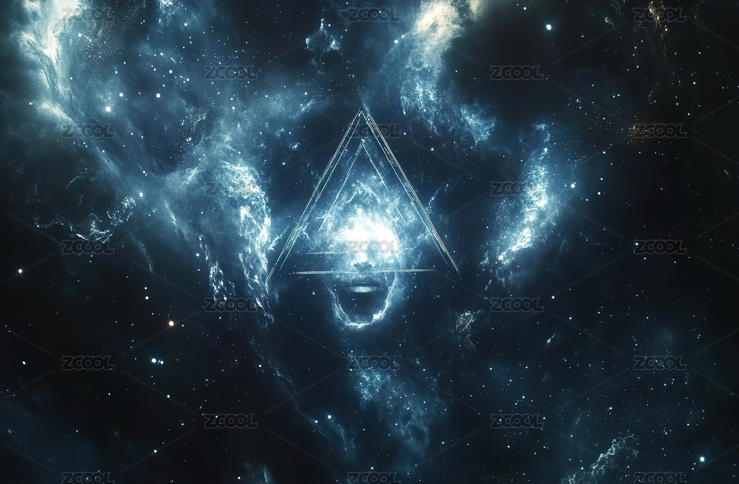 蓝色,三角形,光线,空间,抽象,未来,背景,奇幻,神秘,星空