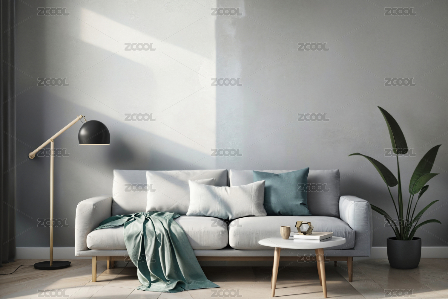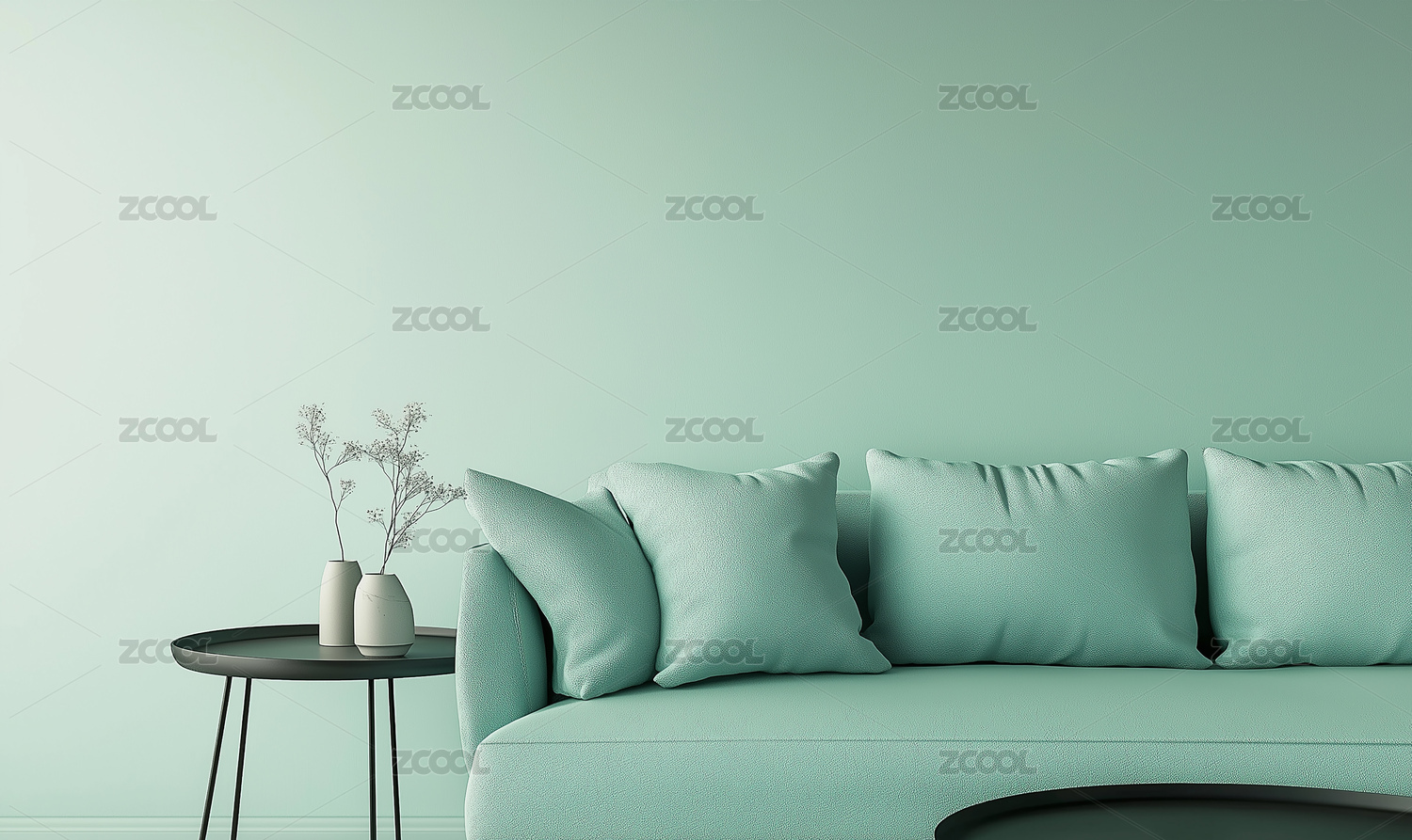 薄荷绿墙沙发绿植营造清新室内场景