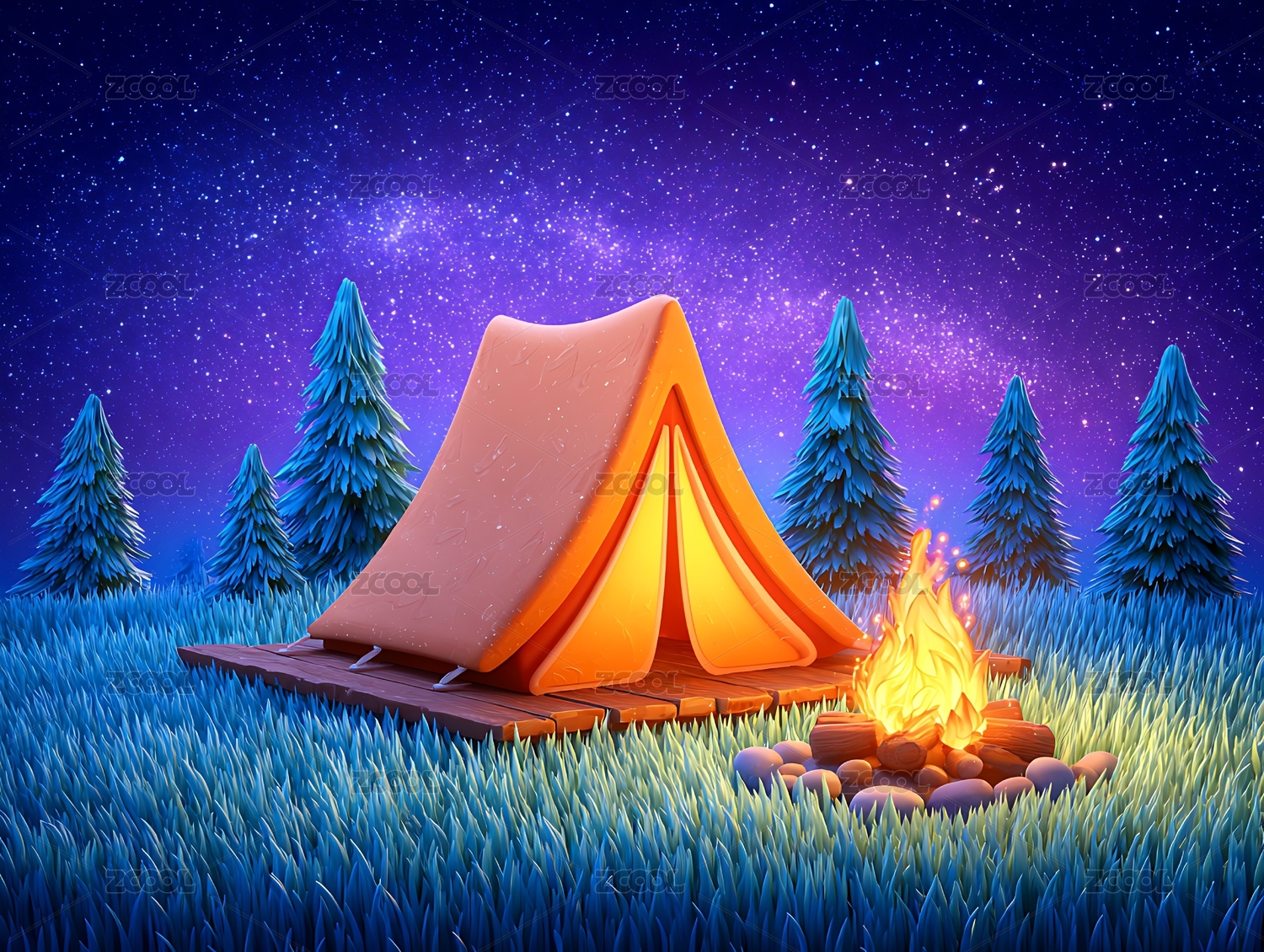 帐篷,篝火,夜晚,星空,山地,露营,户外,自然