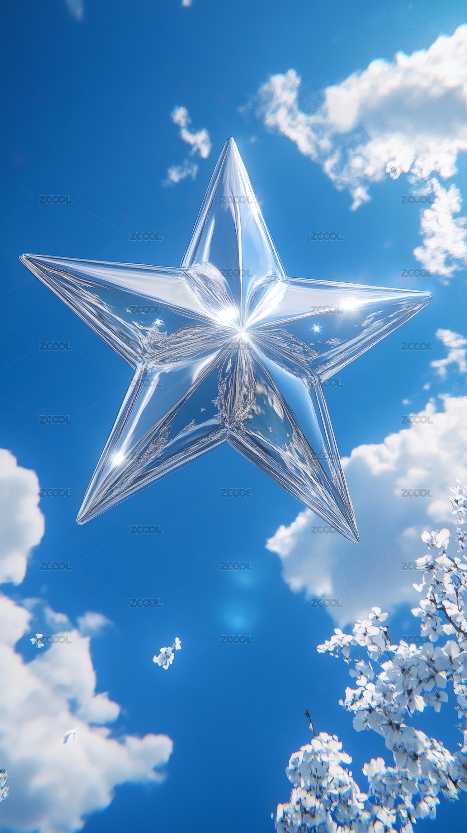 白色,立体,线条,天空,纯净,蓝天,白云,五角星,形状,空旷