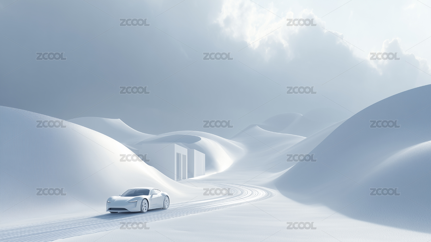 未来,科技,汽车,雪山,建筑,极简,白色,曲线,光线,几何