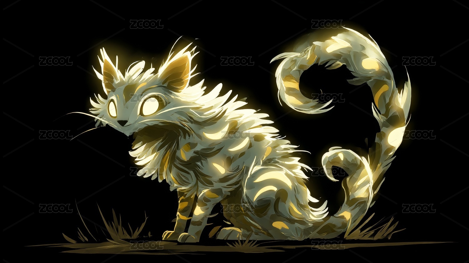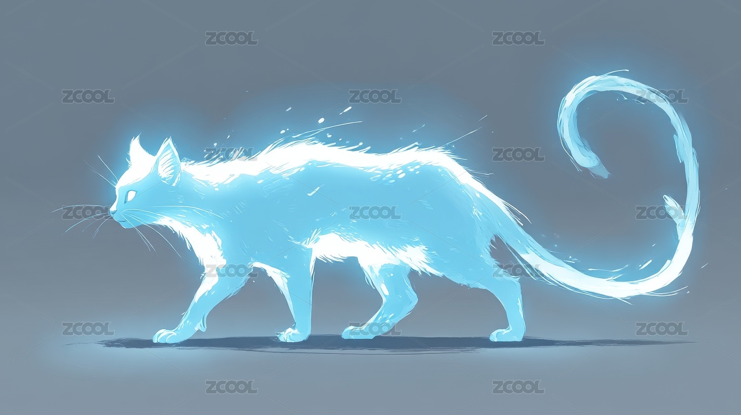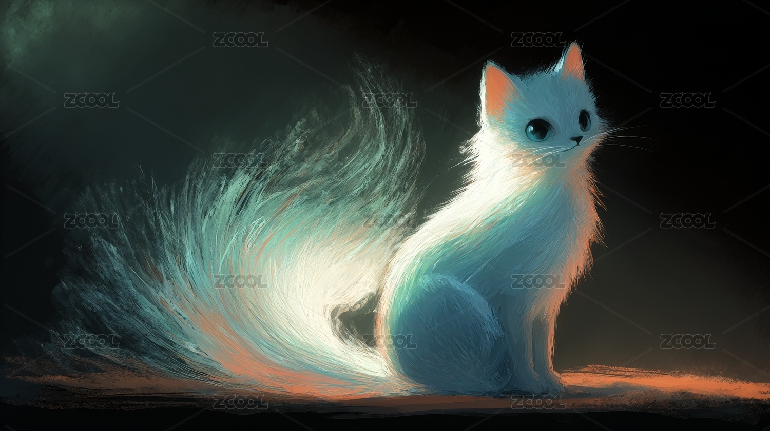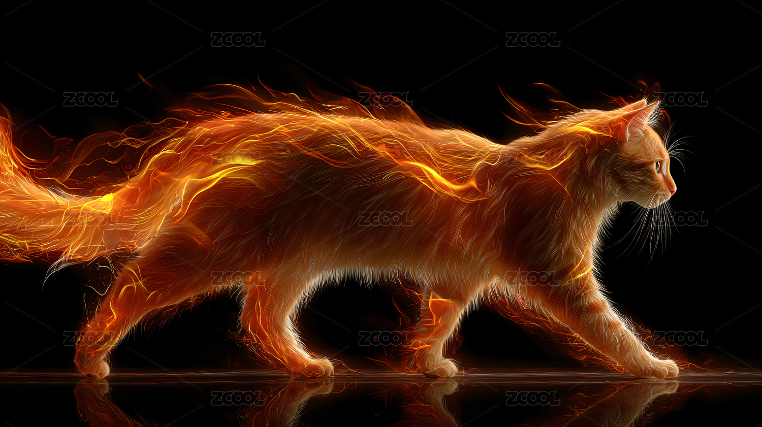 小猫,绘画,能量,幻想,CG,火焰,蓝色,卡通,壁纸,奇幻