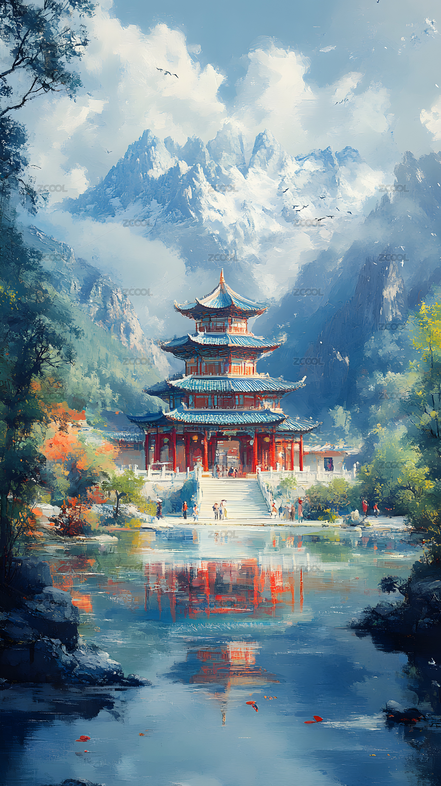 中国风国潮风古代建筑插画