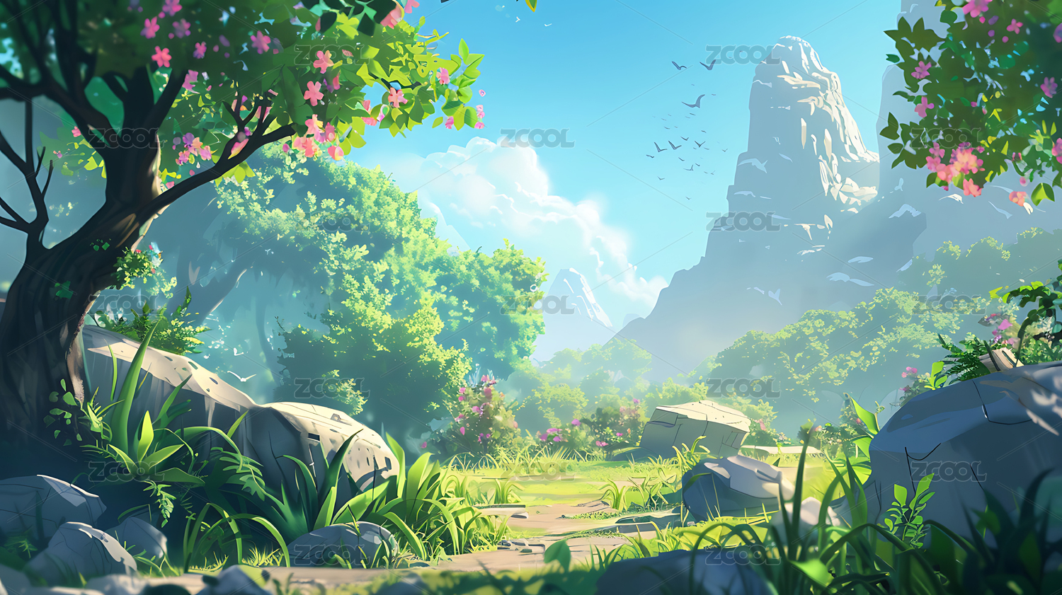 树木,宁静,山脉,天空,绿色,自然,风景,梦幻,河流,环境