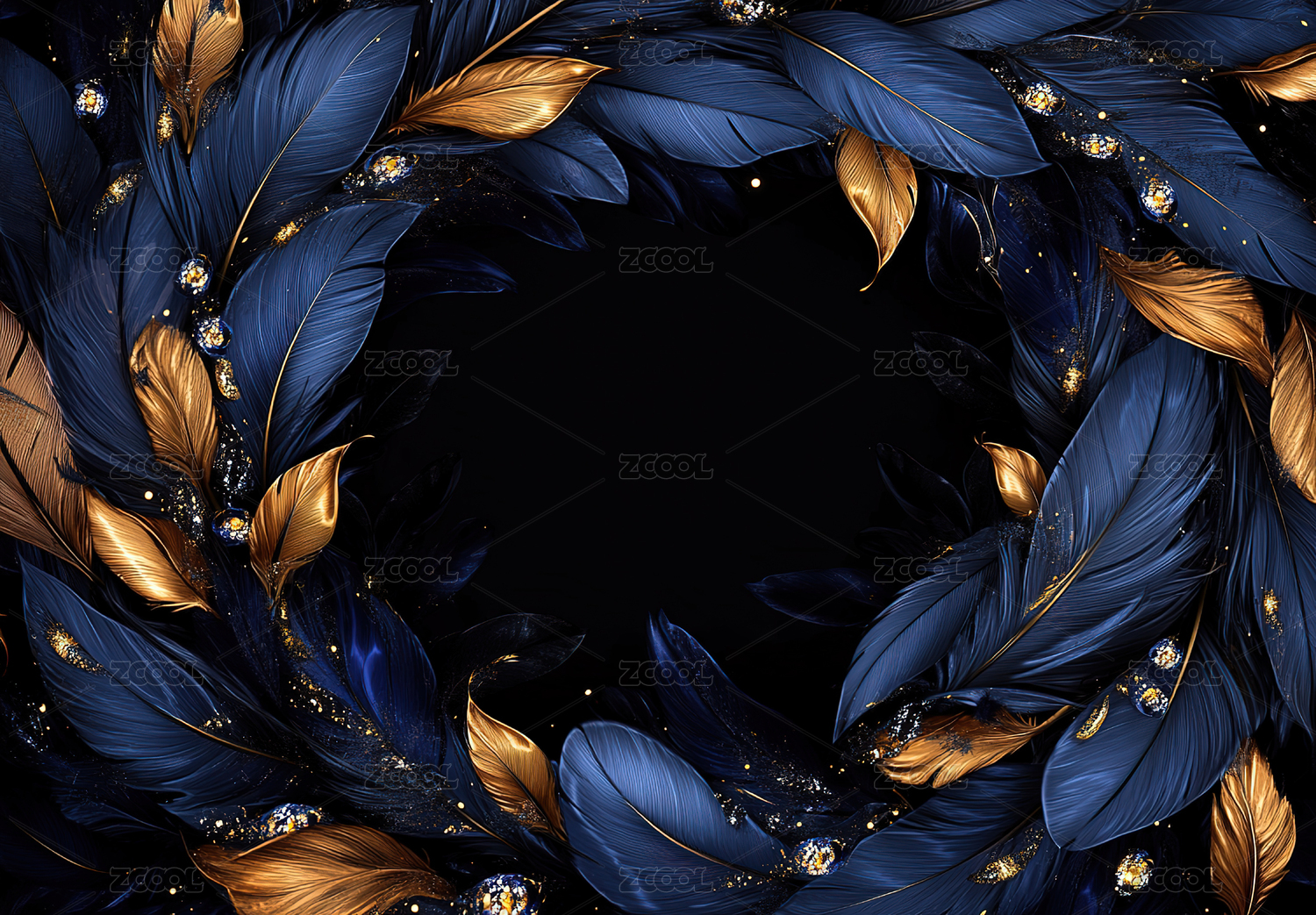 蓝色羽毛金色圆环