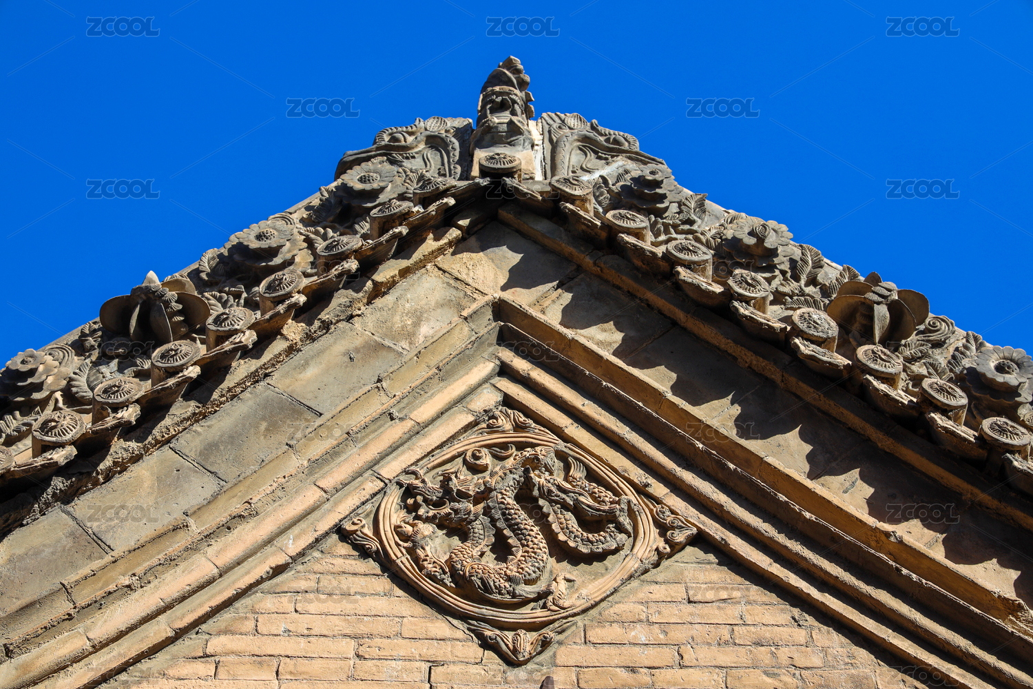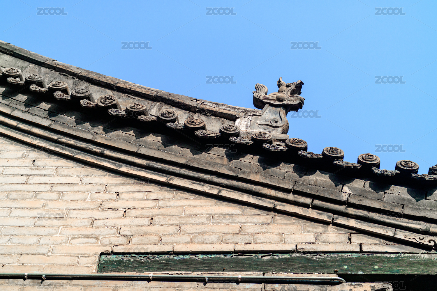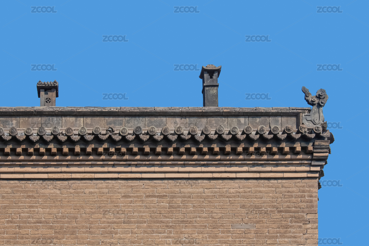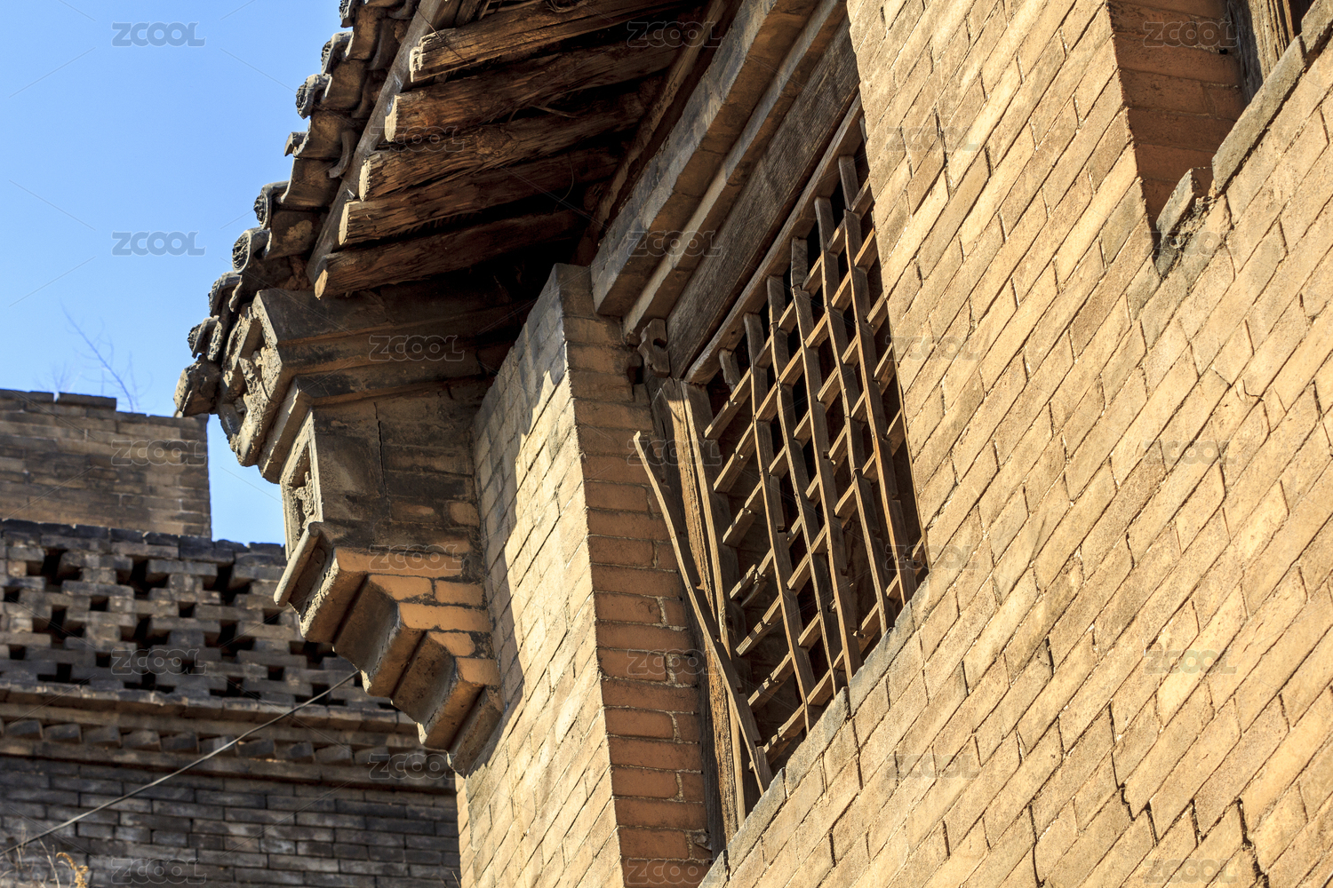 中国山西省平遥县古城民宅屋檐斗拱园林建筑