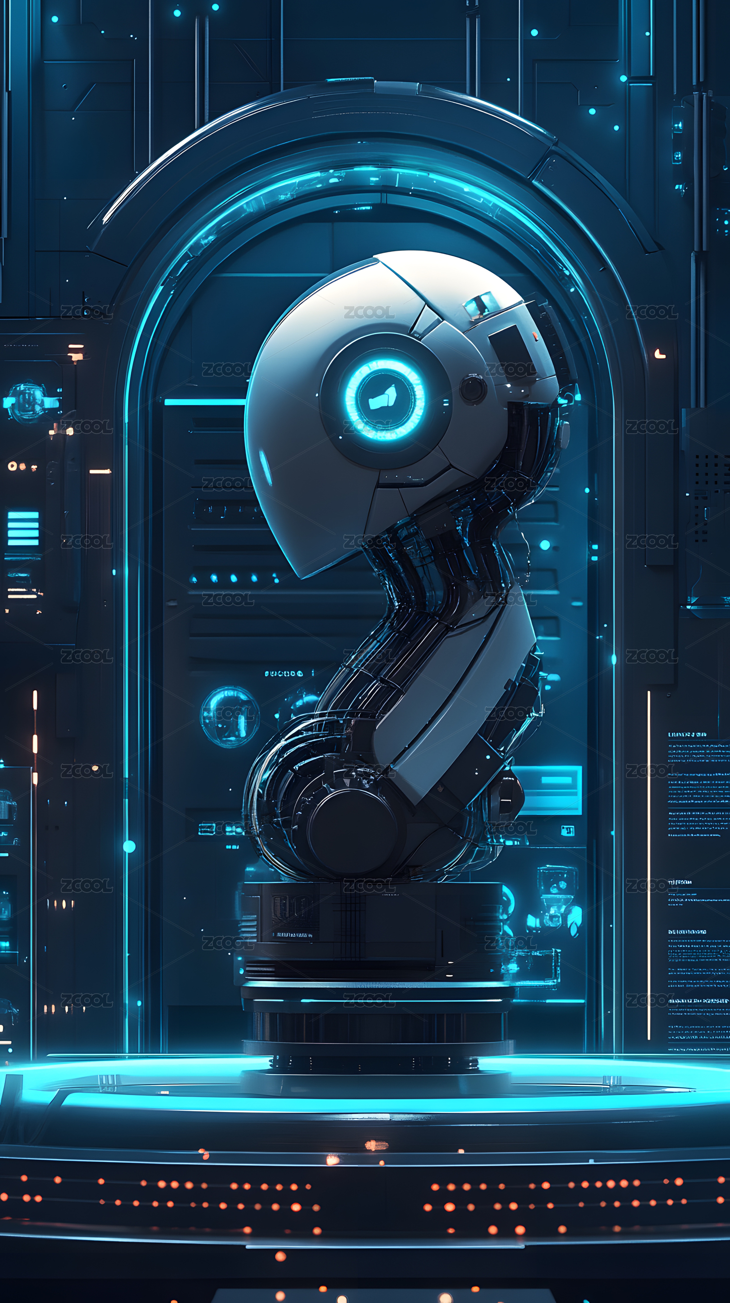 蓝色暗黑光芒高科技AI智能数字人发光手指