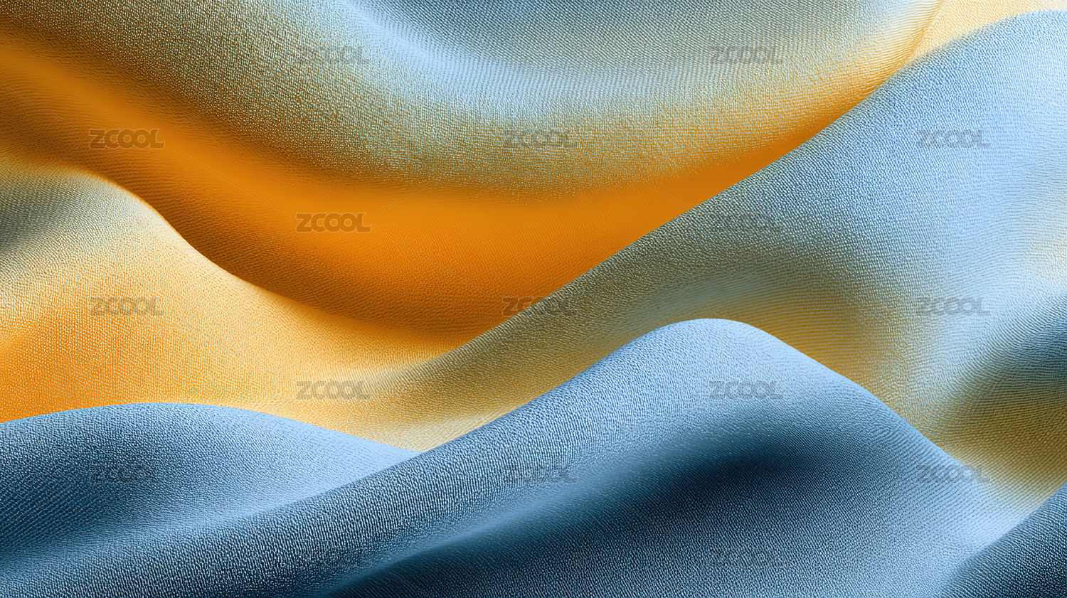 柔软的黄色布料褶皱呈现波浪状