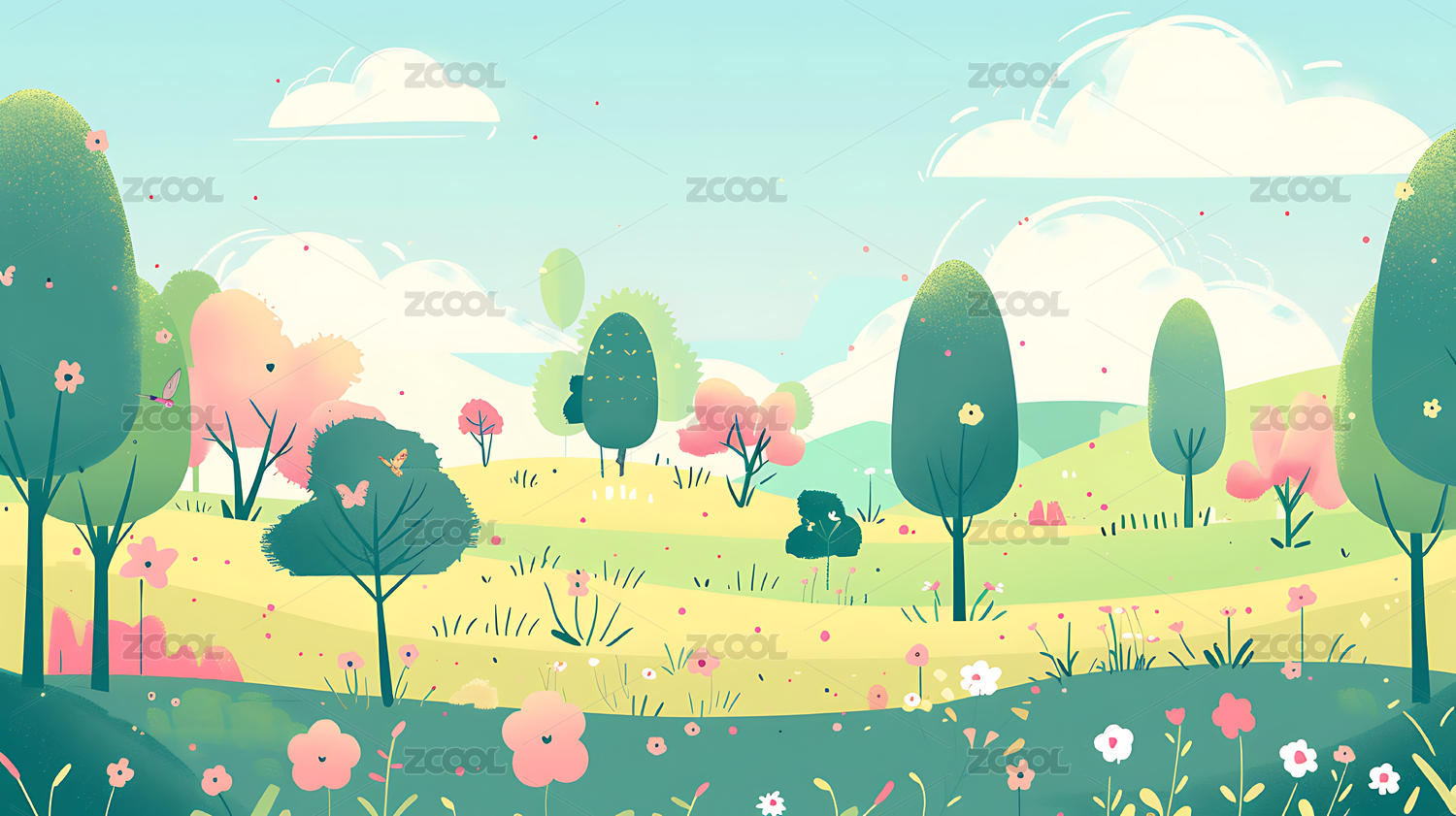 插画,春天,节气,春季,森林,立春,背景,户外,风景,旅游