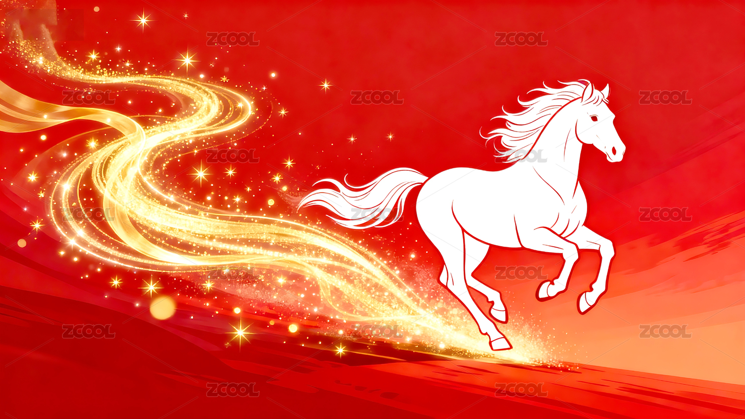 红色背景下带金光奔跑的红色马
