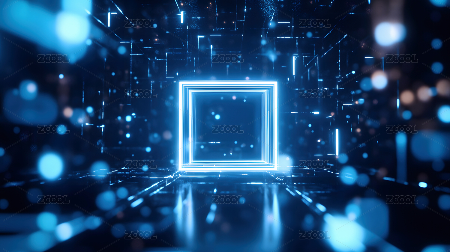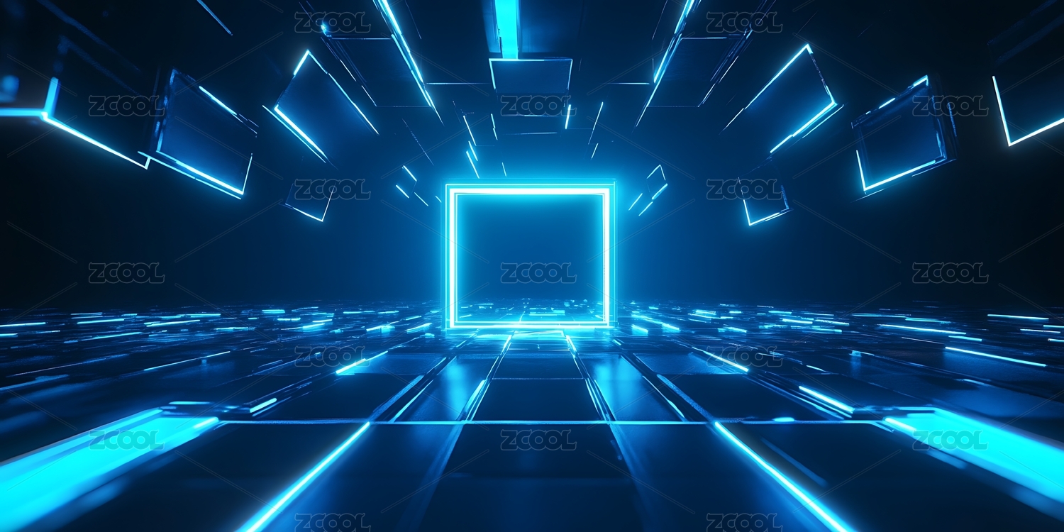 抽象科技感蓝色立方体光线穿梭