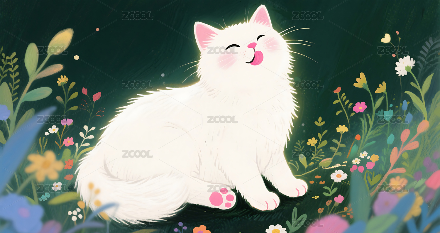 萌宠,猫咪,花草,植物,花卉,猫,插画,动物