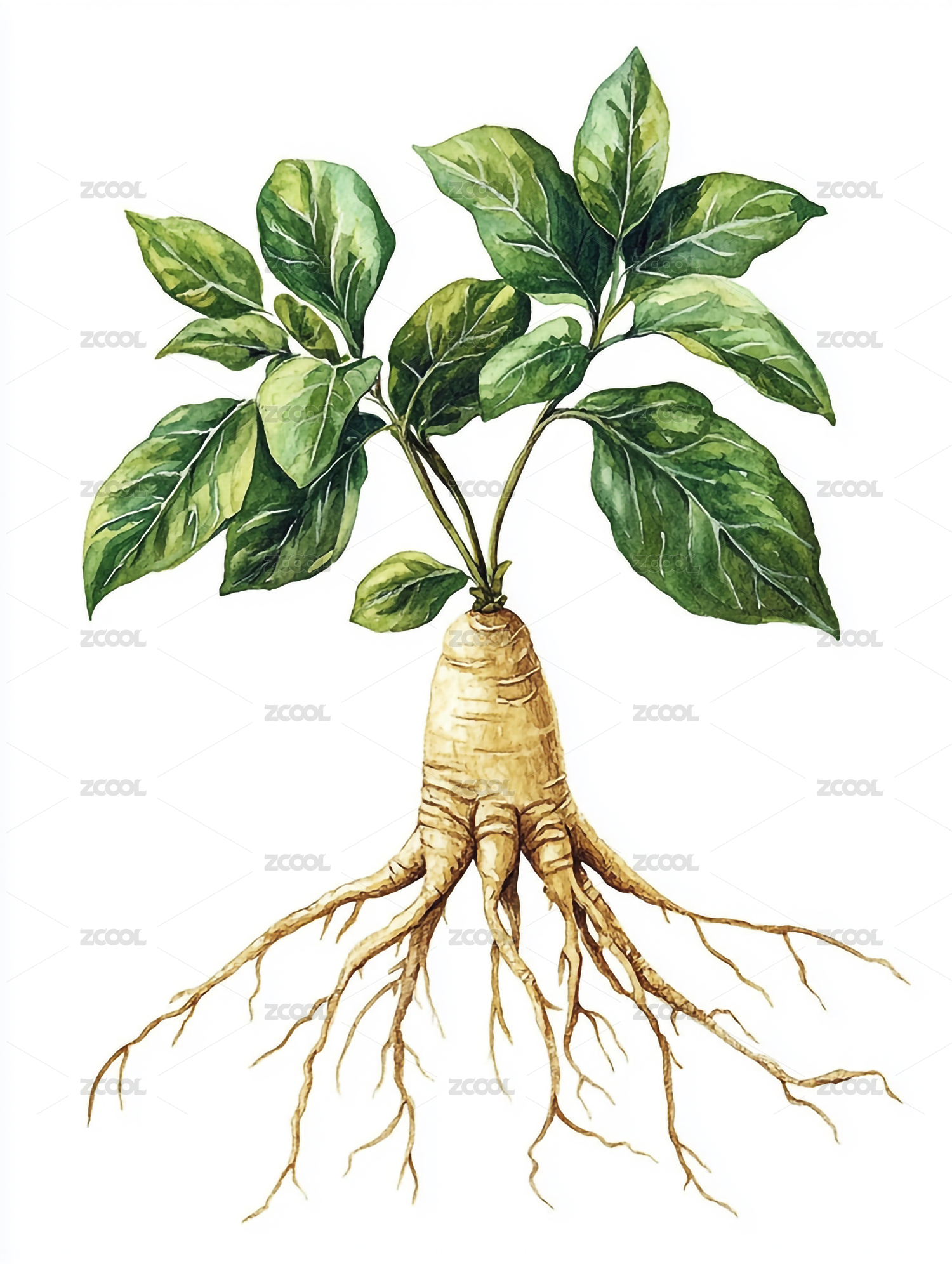 人参中草药复古水彩插画