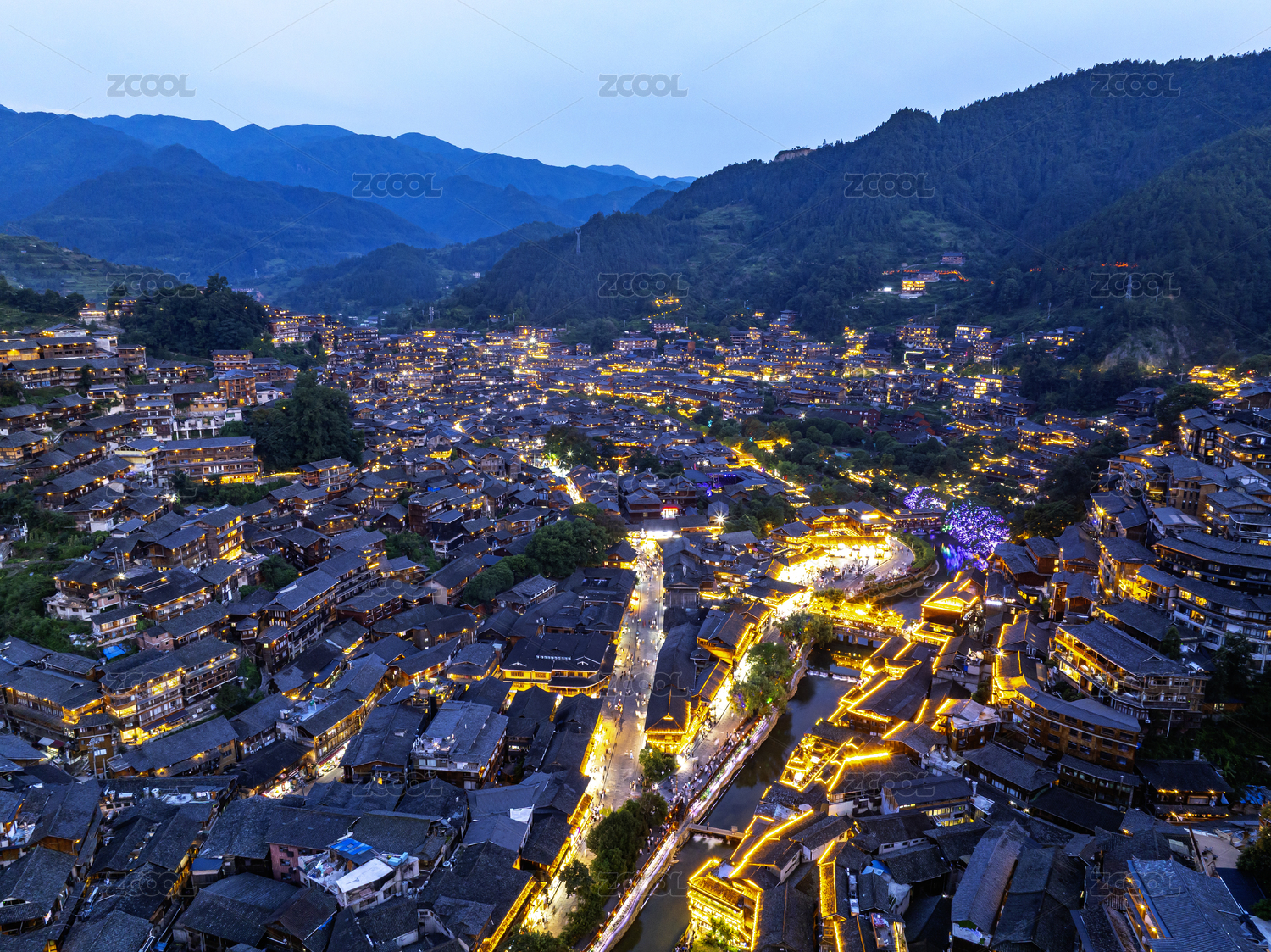 贵州黔东南雷山县西江千户苗寨航拍风光