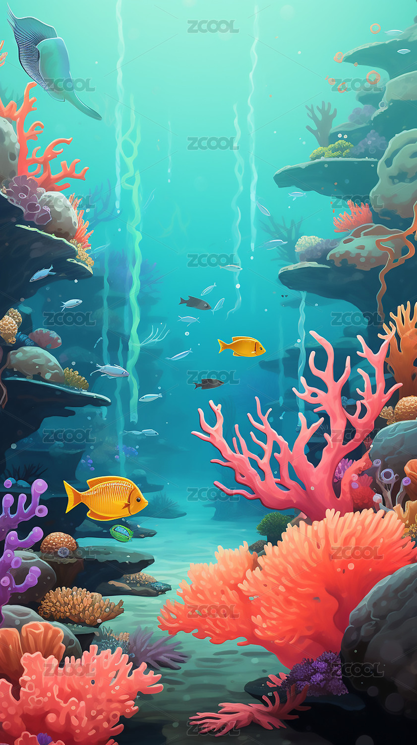海底世界:阳光穿透,鱼群畅游,珊瑚绚烂