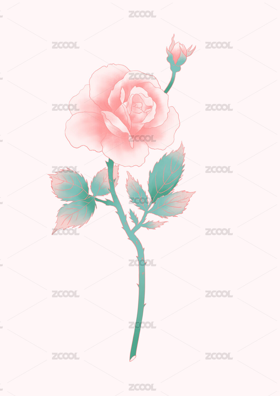 情人节节日唯美小清新玫瑰花鲜花花朵插画
