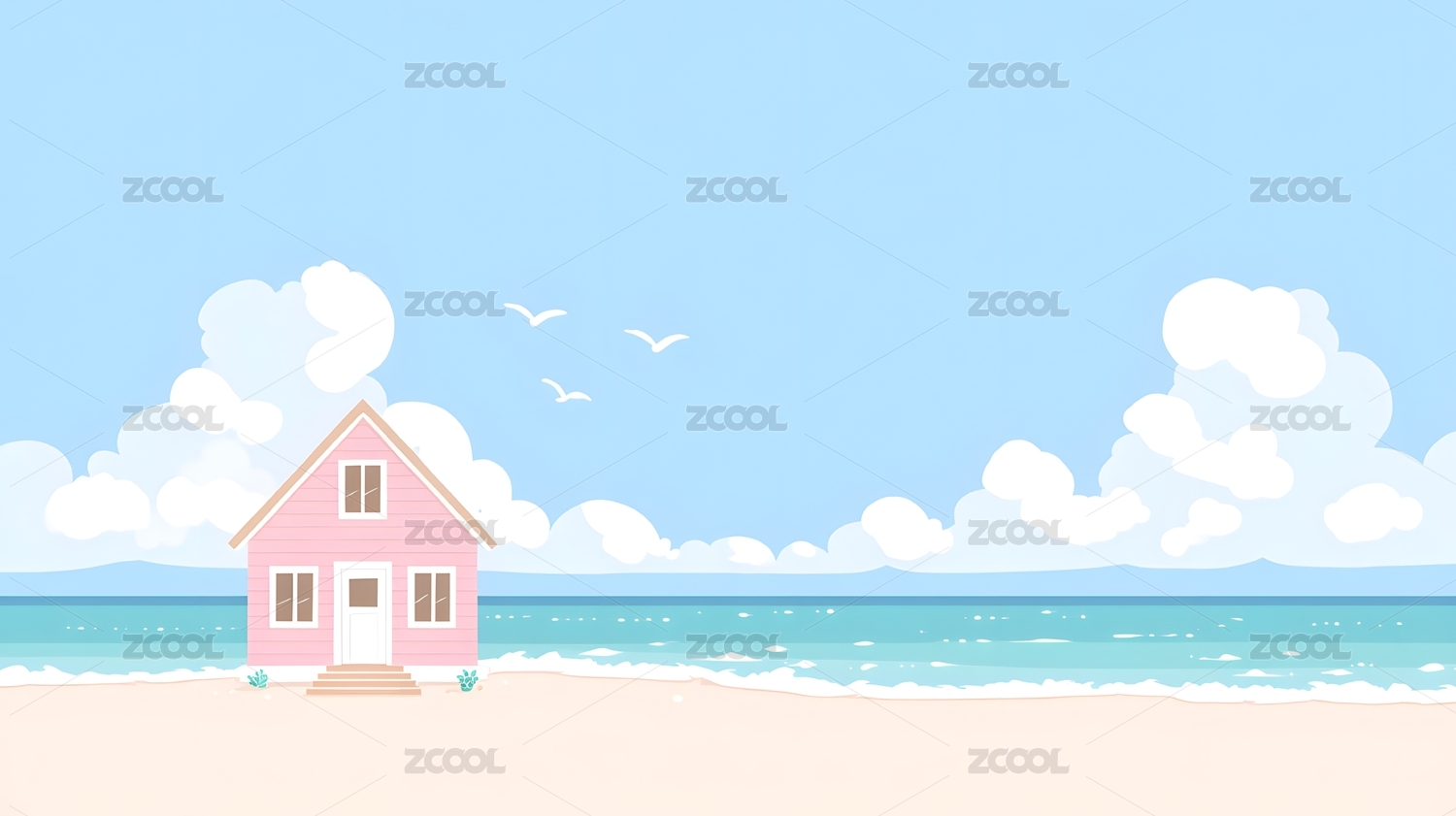 蓝色,温暖,植物,插画,风景,美好,静谧,宁静,清新,简约