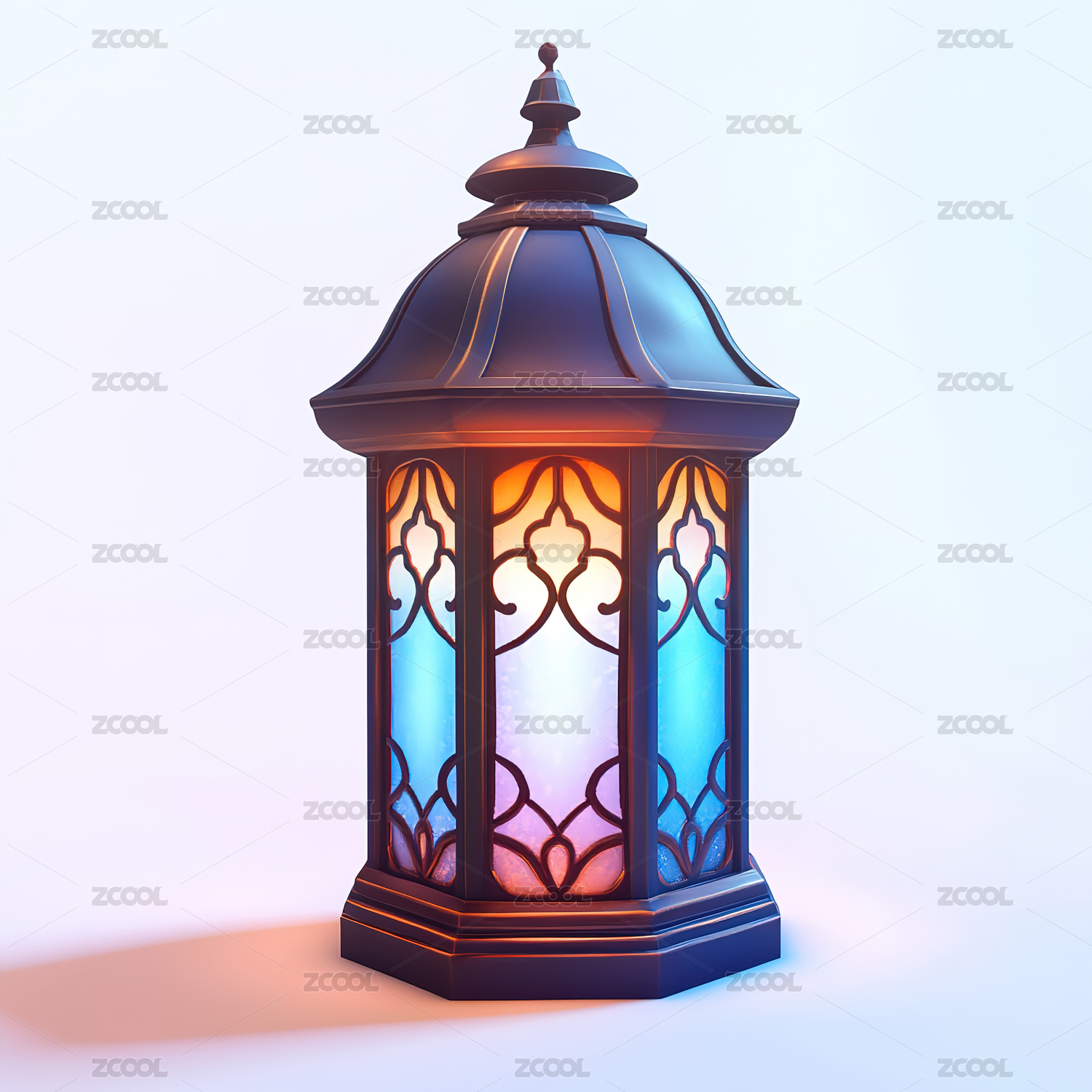 原画黑底极简奇幻魔幻宝石灯笼3D卡通插画