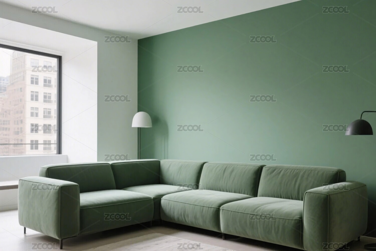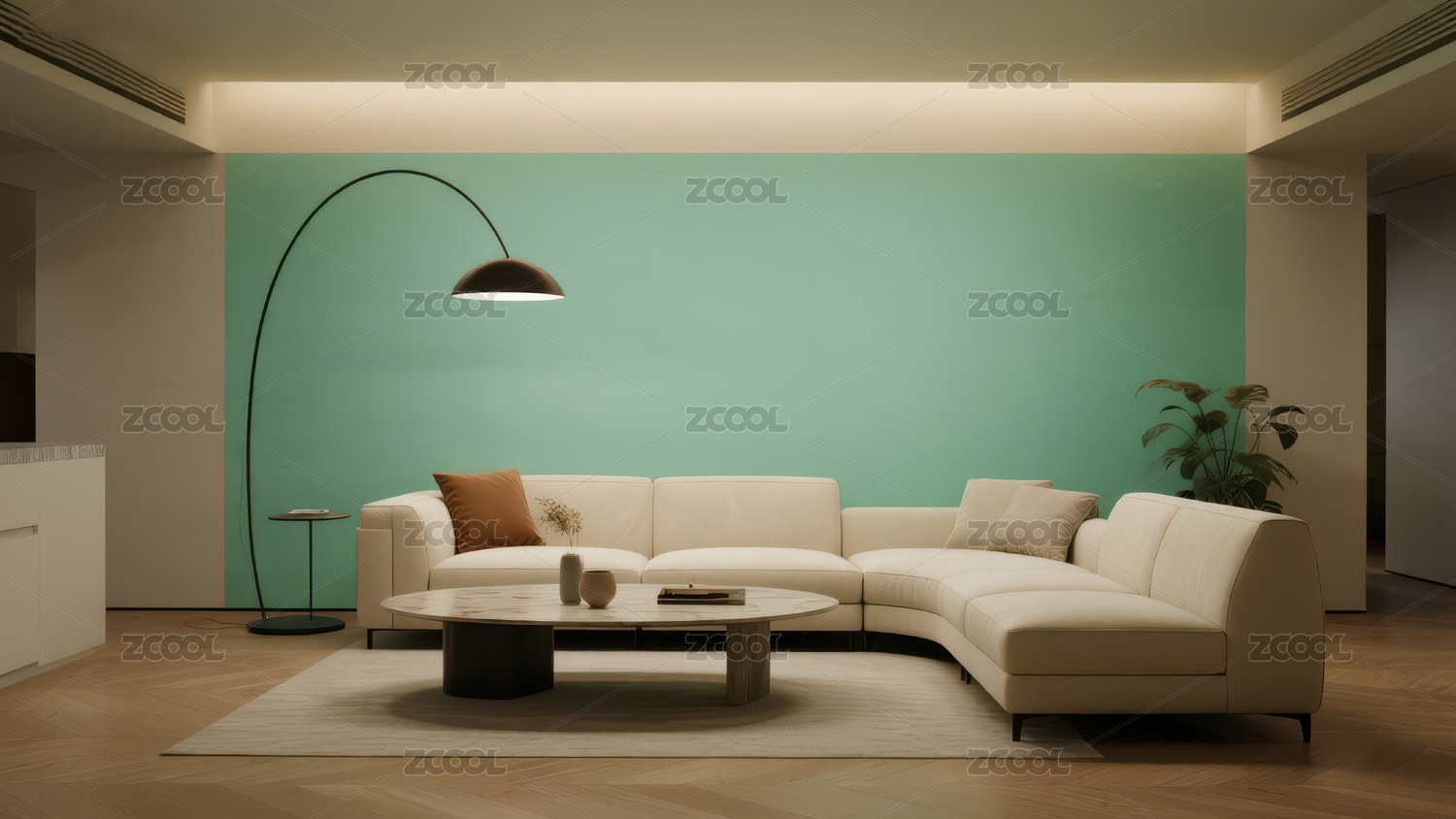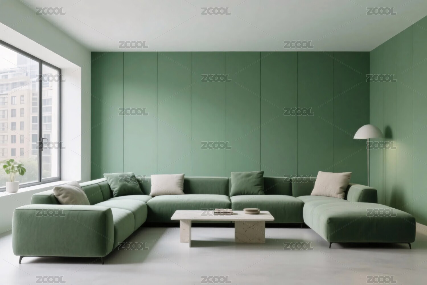 客厅,现代,简约,沙发,茶几,圆形,椅子,绿色,墙壁,抽象画
