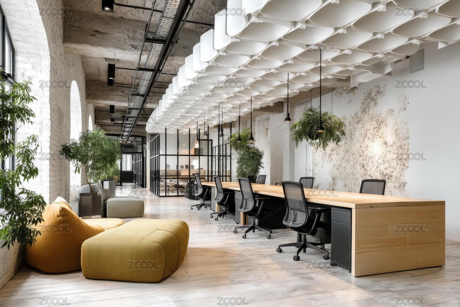 办公室,现代,室内,设计,植物,家具,玻璃,隔断,艺术品,地毯