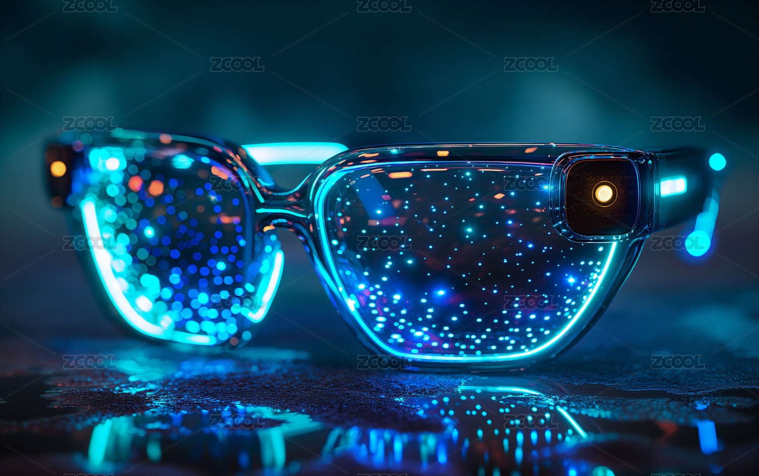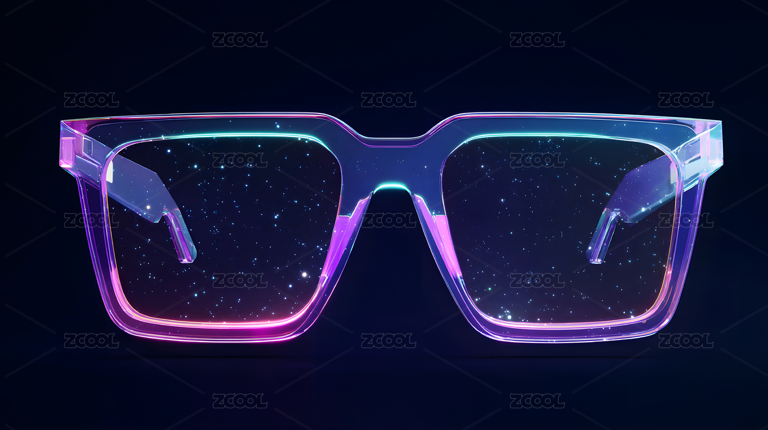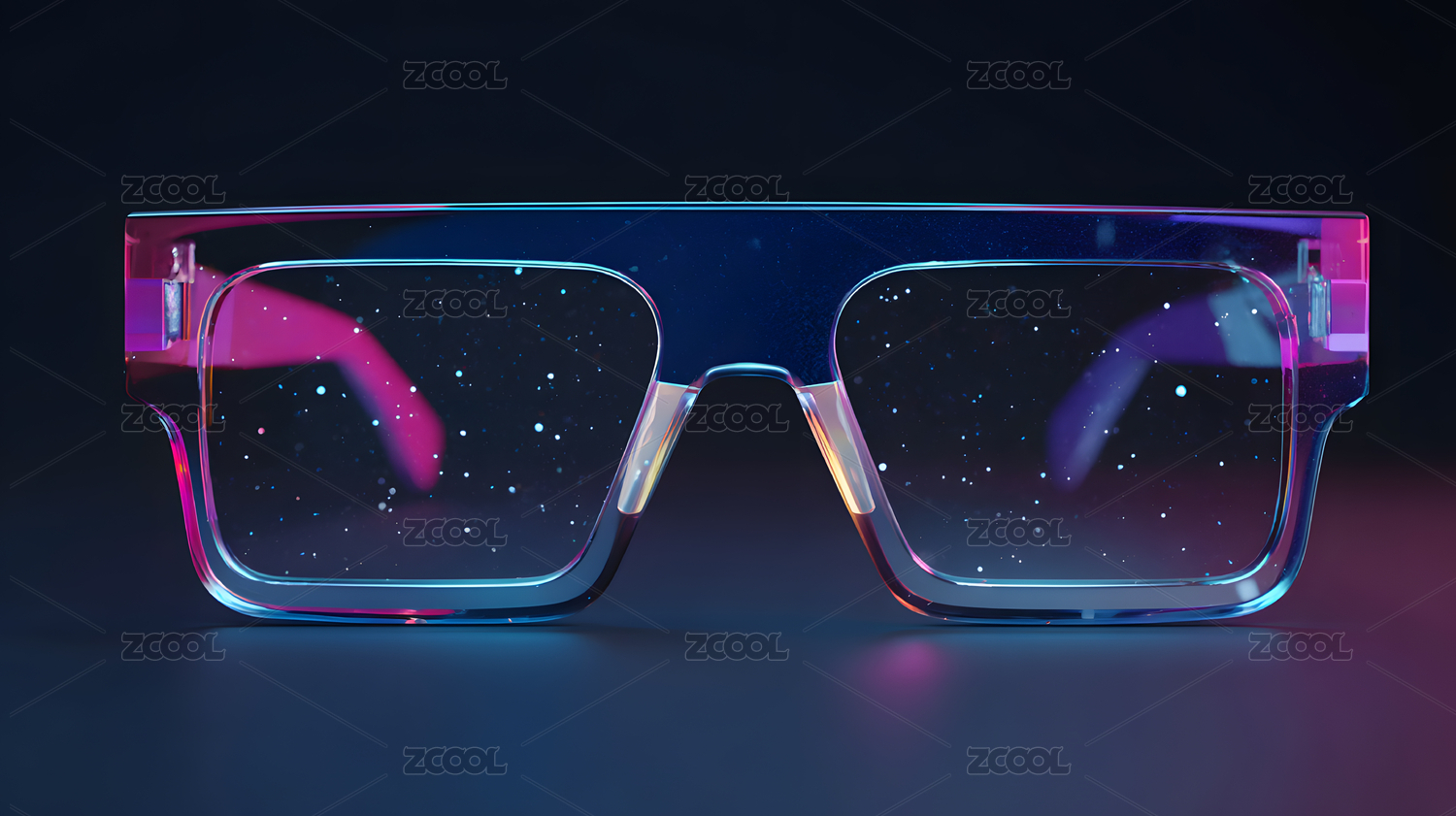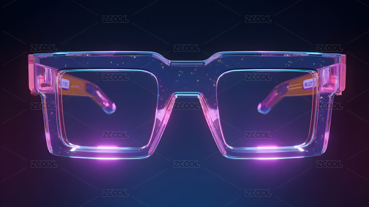 黑色桌面的时尚荧光色眼镜3D卡通立体插画