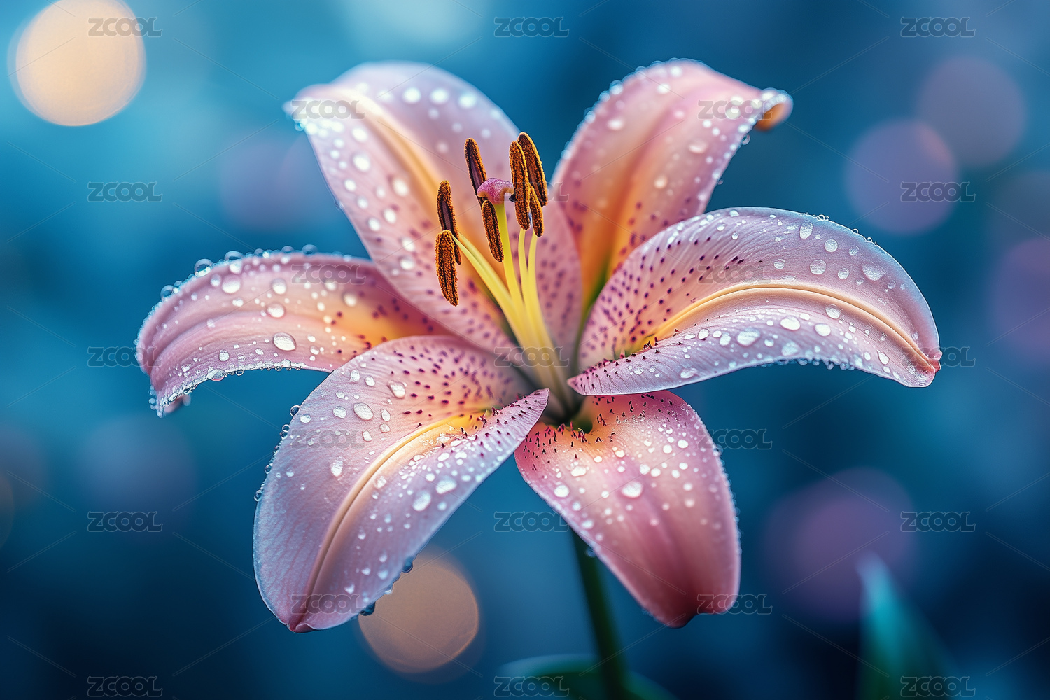 百合花,粉色,水珠,花卉,特写,自然,植物,花瓣,花蕊,花