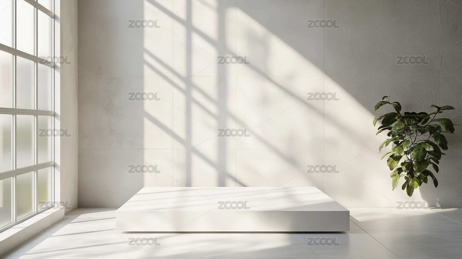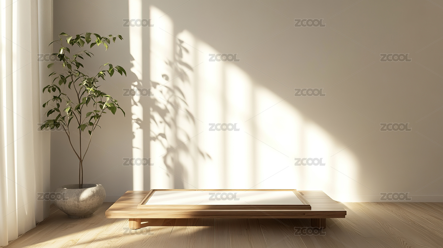 简约,展览台,白色,木纹,现代,阳光,阴影,空间,装饰