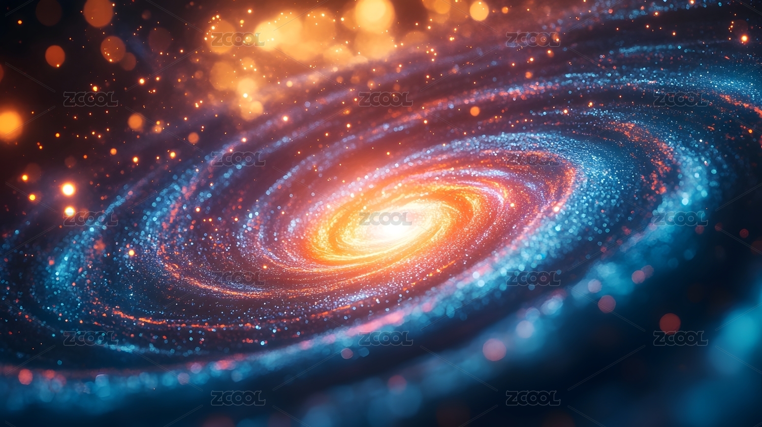 黑洞周围星系旋涡与星光璀璨的宇宙景象