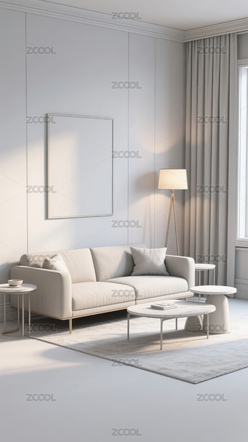 客厅,现代,简约,白色,沙发,茶几,墙画,室内,设计,灯光