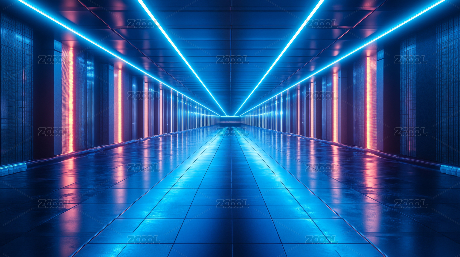 抽象科技感荧光色隧道走廊赛博朋克3D插画